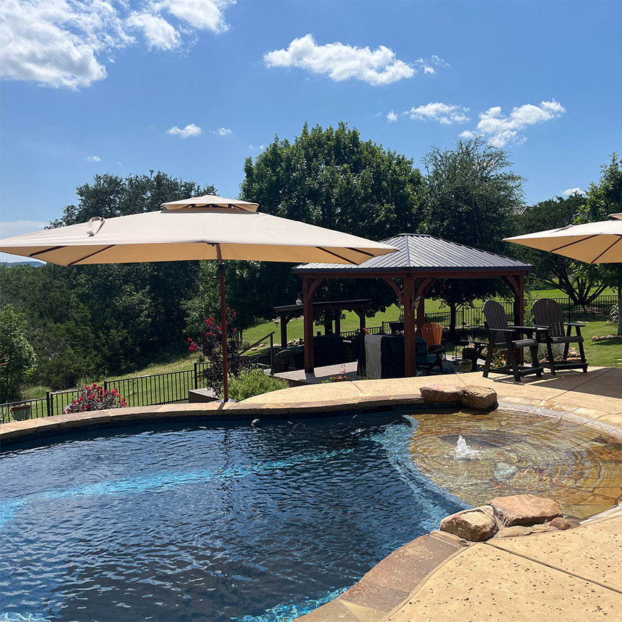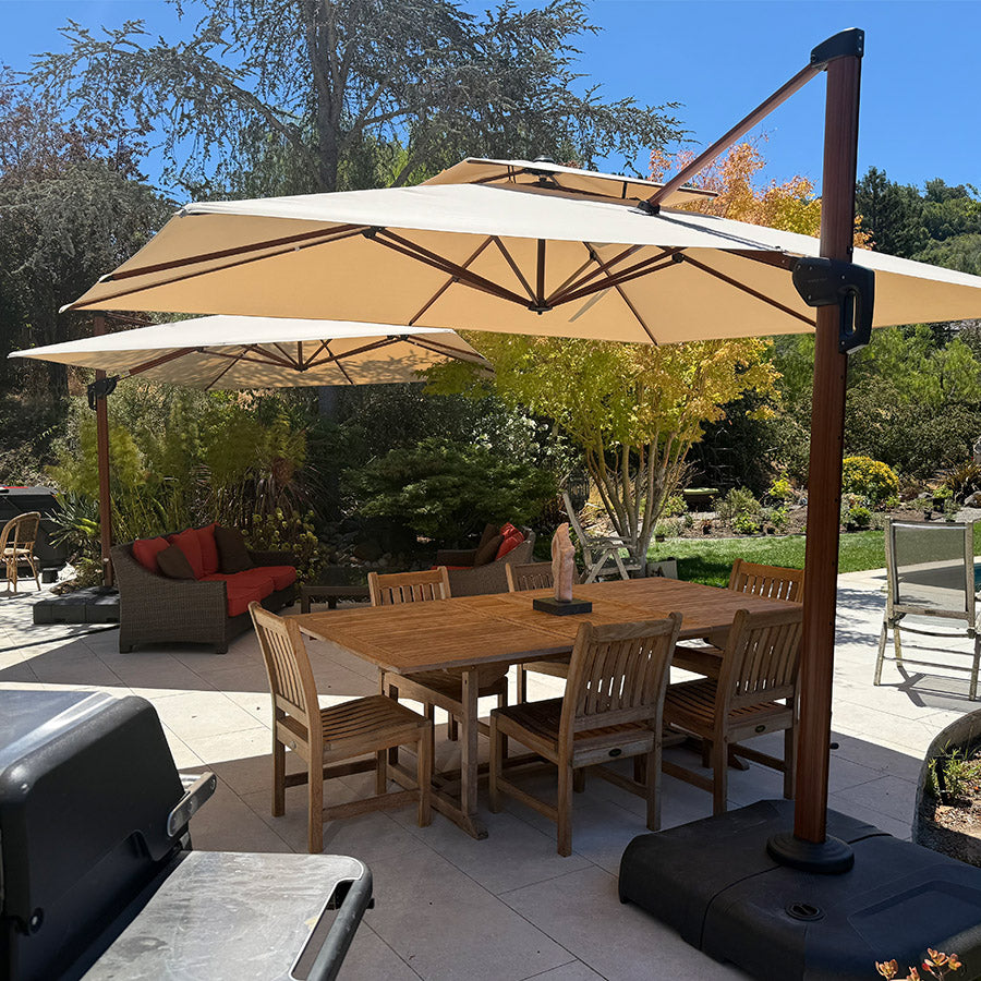 💜 [ Ombre Parfaite ] : Ce parasol d'extérieur rectangulaire présente un design unique à double auvent et est fabriqué en tissu 100 % polyester de 240 g/m², classé UV50+, offrant une isolation thermique efficace, une résistance à l'eau, aux UV et à la décoloration. Idéal pour une utilisation en extérieur et compatible avec la plupart des meubles de patio, il assure une protection attentive et une excellente expérience. Les parasols de terrasse incluent également des ouvertures de ventilation.