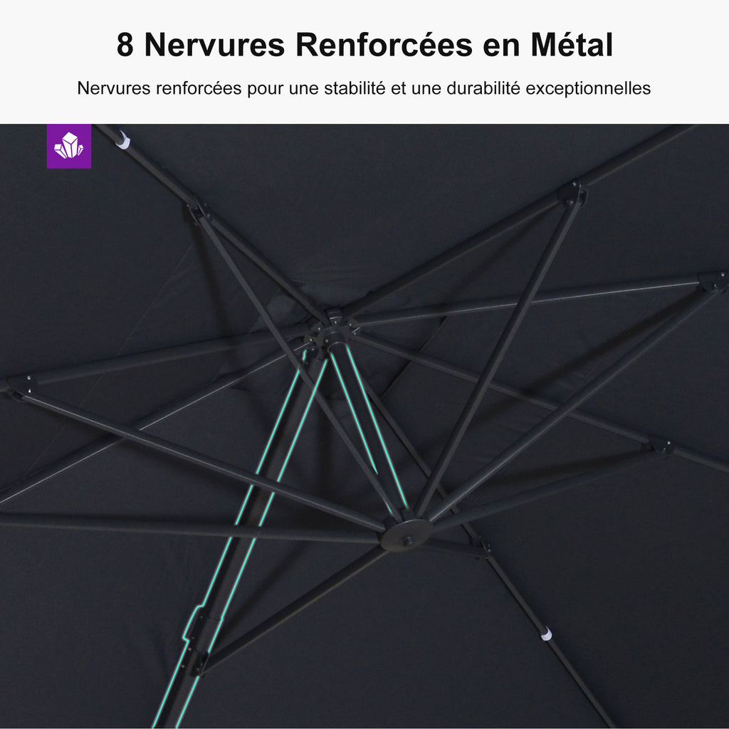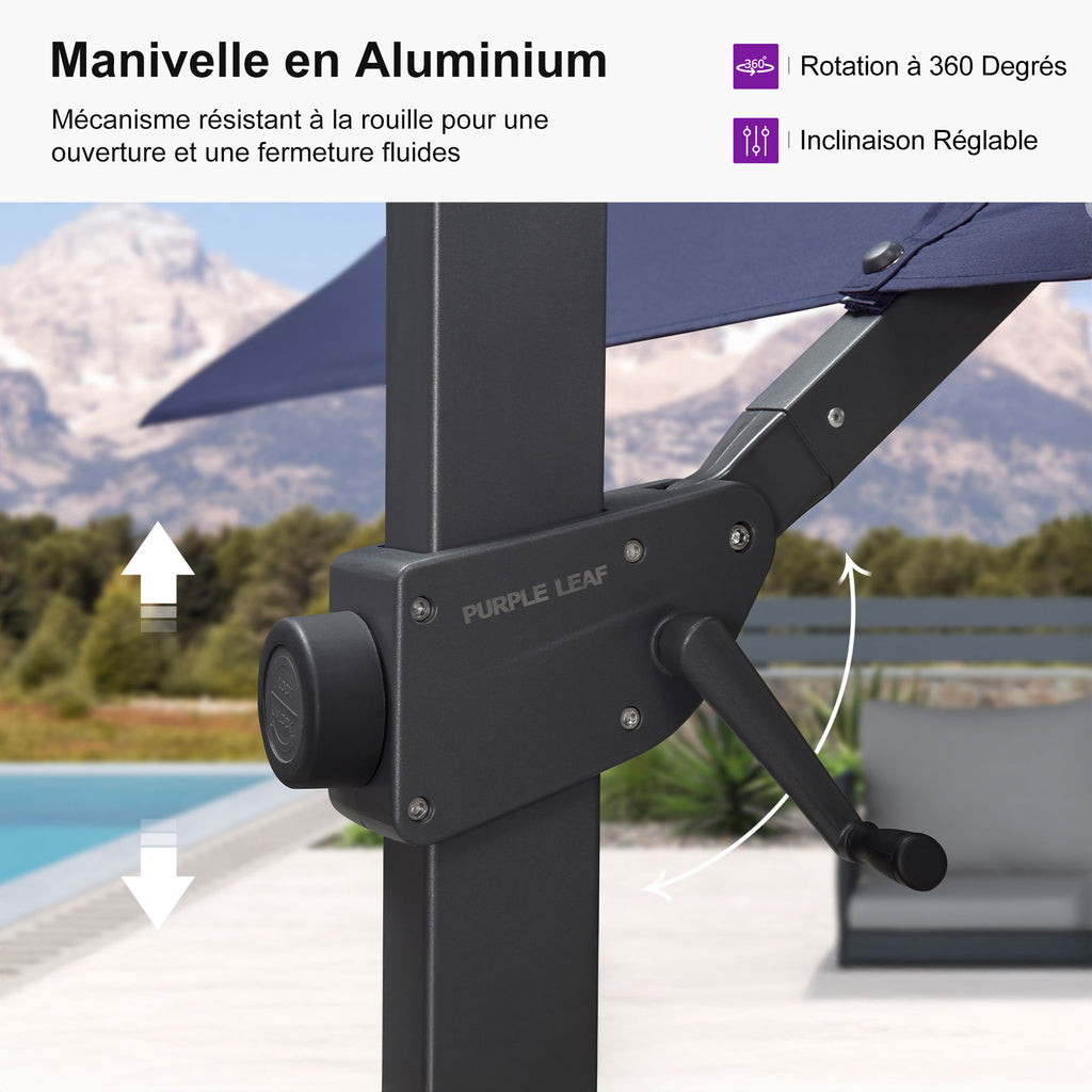 Découvrez la parfaite harmonie entre style et fonctionnalité avec le parasol de PURPLE LEAF, conçu pour transformer votre espace extérieur en un véritable havre de paix ensoleillé. Élégamment conçu, ce parasol est équipé d’un mécanisme à manivelle sans support central, garantissant une vue dégagée et un espace d’assise libre de toute obstruction.