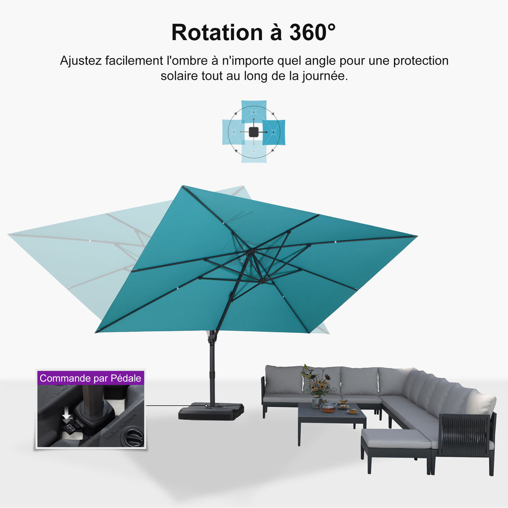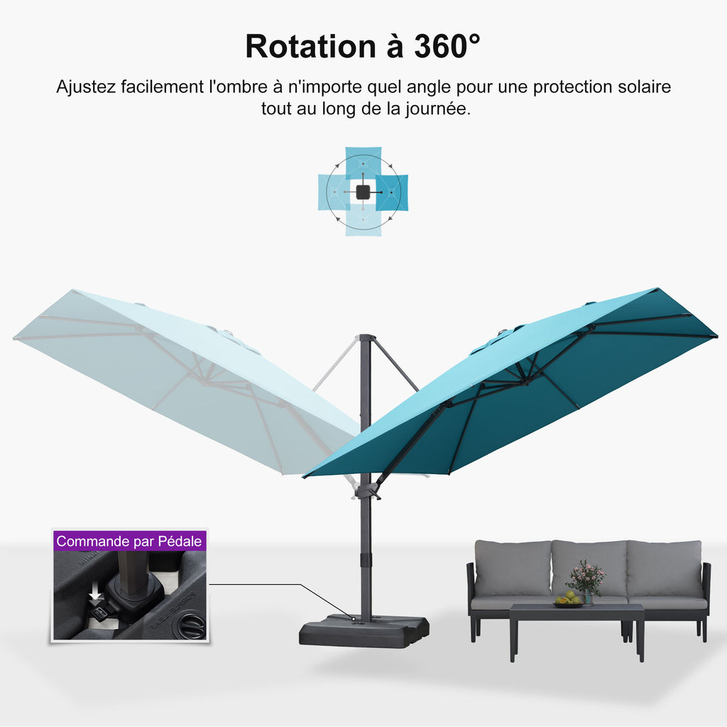 💜 [ Conception à Rotation Complète à 360° ] : Faites pivoter la canopée en douceur dans n'importe quelle direction d'une simple poussée, pour une protection solaire optimale lors de vos moments de détente, que ce soit pour vous prélasser, dîner ou vous relaxer au bord de la piscine.