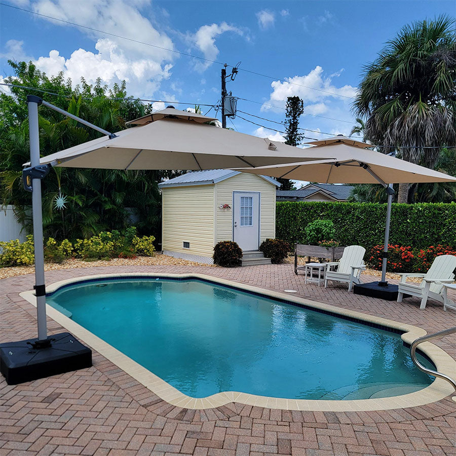 Parasol Déporté Classique À Double Toit Carré De Jardin Terrasse Extérieur