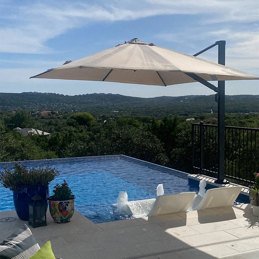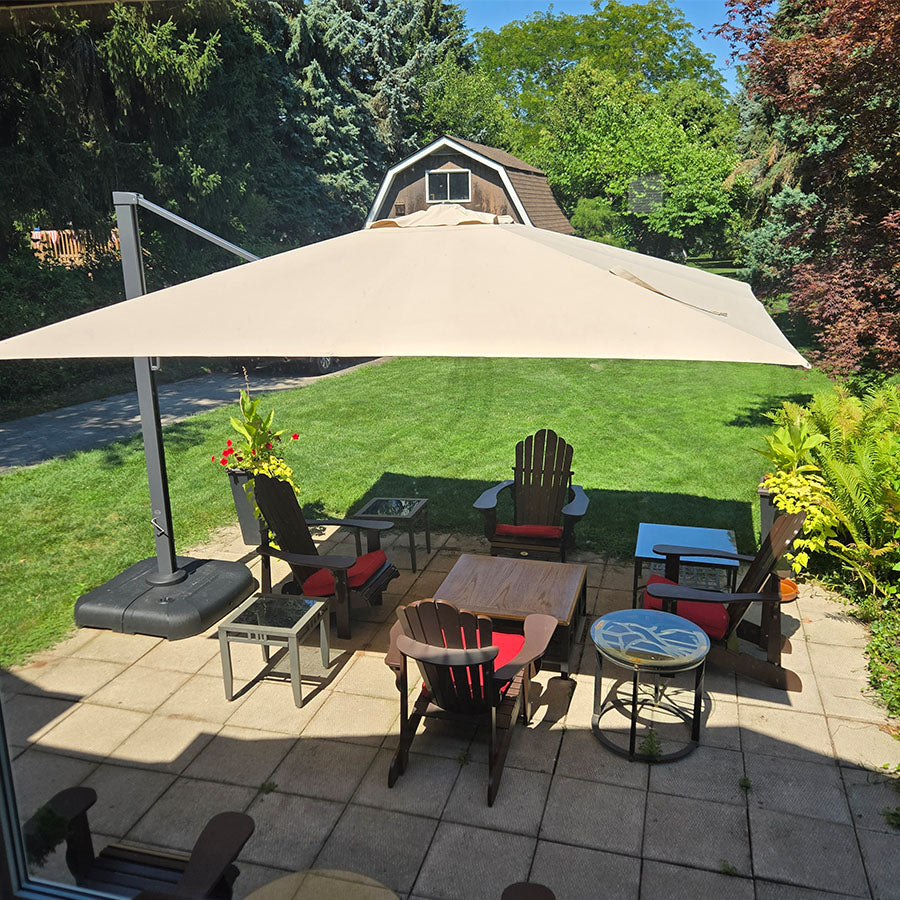 • PURPLE LEAF PARASOL DÉPORTÉ DE TERRASSE MÉGAGRAND ULTRA-LOURD À MANIVELLE AVEC POTEAU ULTRA-RENFORCÉ CARRÉ 5