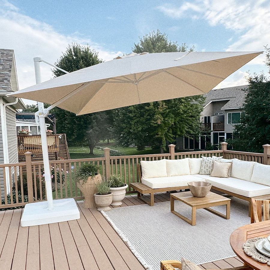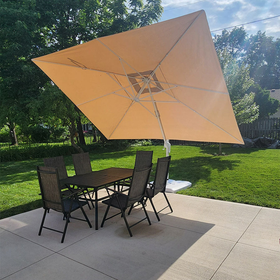 PURPLE LEAF Parasol Déporté Économique avec Cadre Champagne Carré
