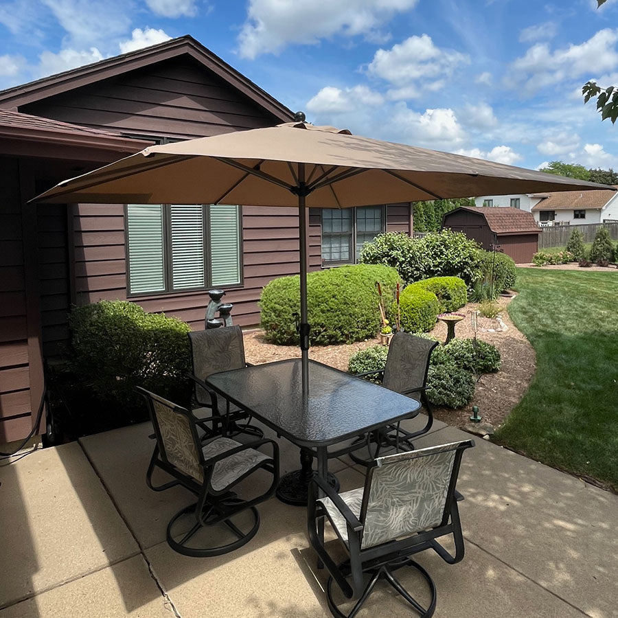 💜 [ Système à Manivelle ] Ce parasol de marché est équipé d'un système à manivelle avec un design découpé plus élégant pour une ouverture et une fermeture rapides du parasol.
