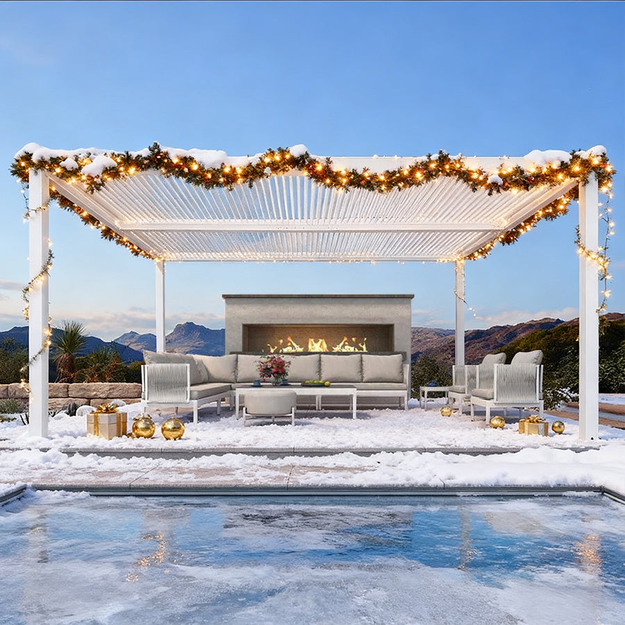 Notre Pergola Bioclimatique en aluminium allie un travail artisanal exceptionnel et une longévité remarquable. Grâce à son toit innovant à lames orientables, vous contrôlez facilement l'ensoleillement et l'ombre. Alliant parfaitement style et fonctionnalité, elle vous protège des intempéries pour vous permettre de profiter de votre espace extérieur toute l'année.